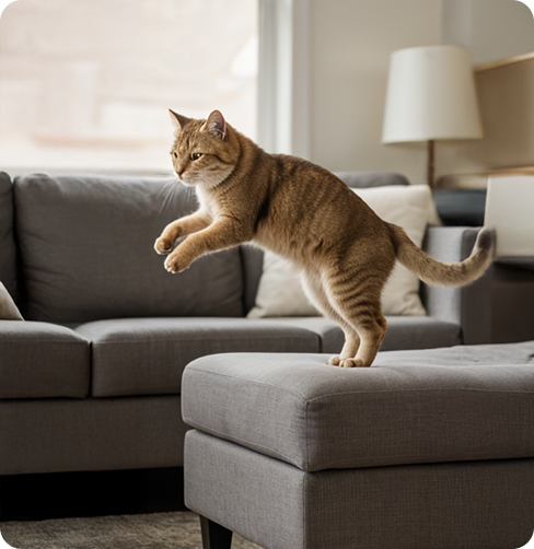 Confident leaps onto counters, window ledges, and cat trees; climbing the stairs like it’s nothing.