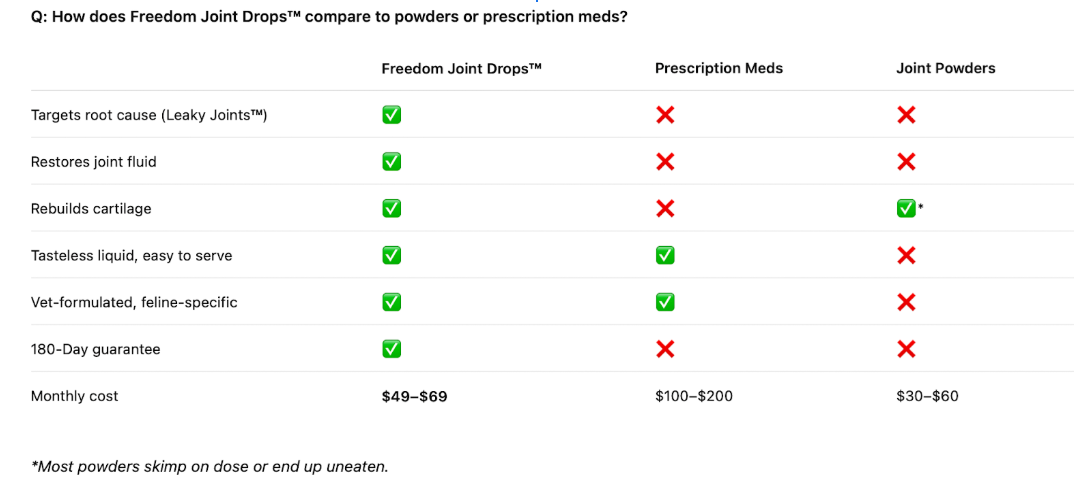 “I’ve seen everything — from failed surgeries to supplement fads. I partnered with Pup Labs to create Freedom Joint Drops™ for Catsso every feline can have a safe, real solution to joint pain — and every owner can have peace of mind.”